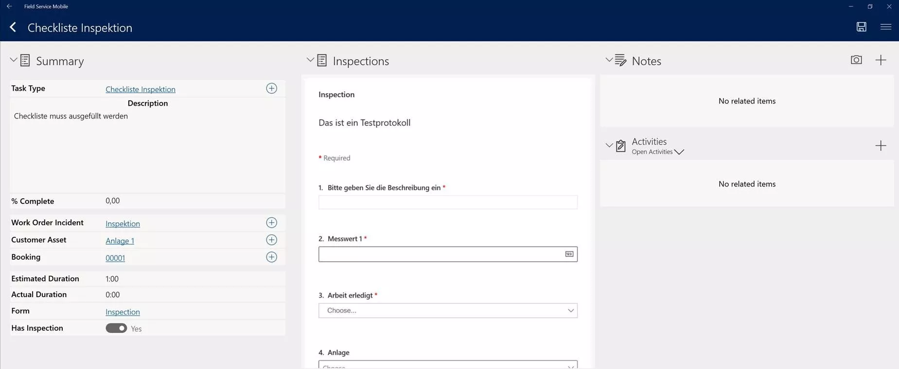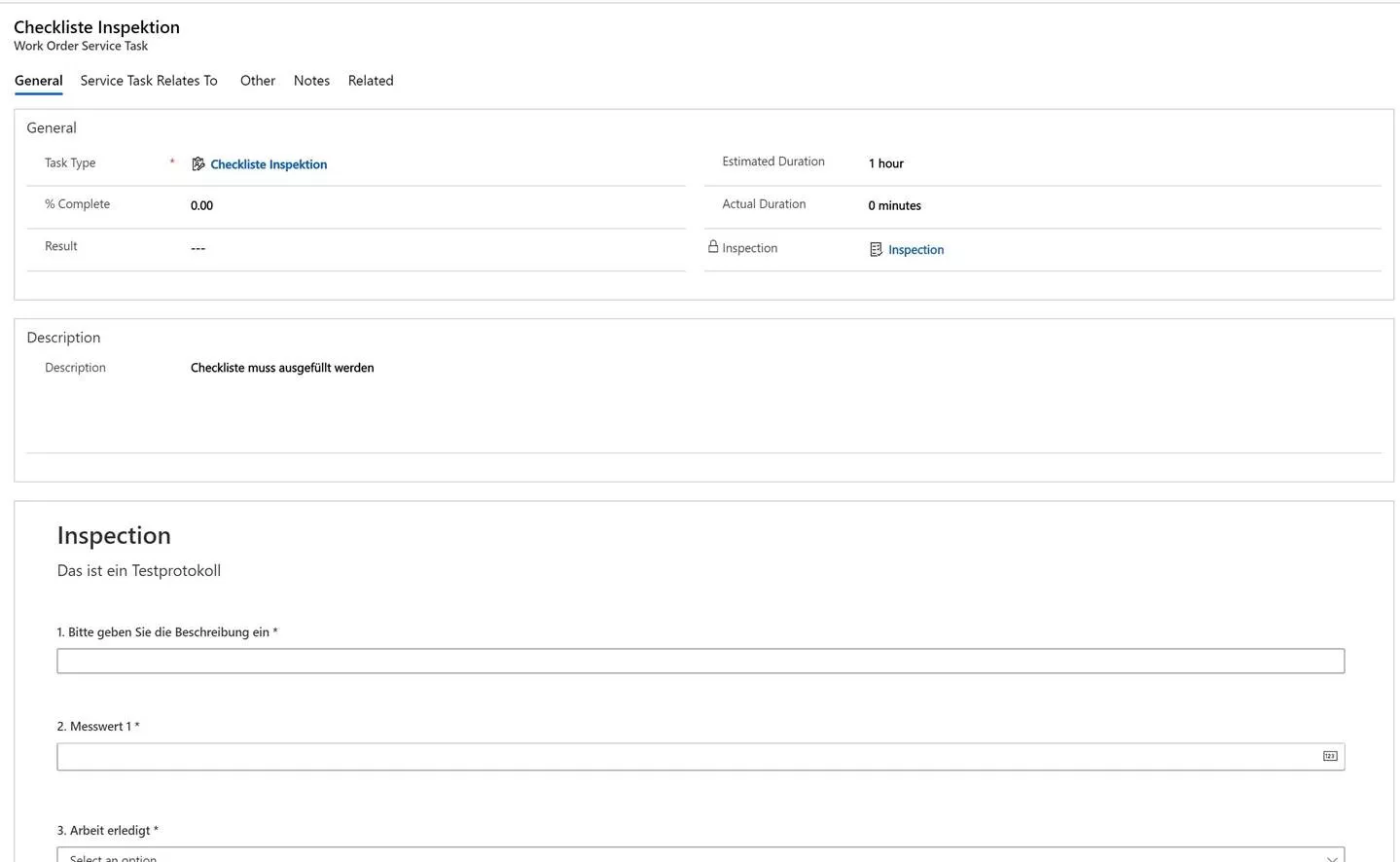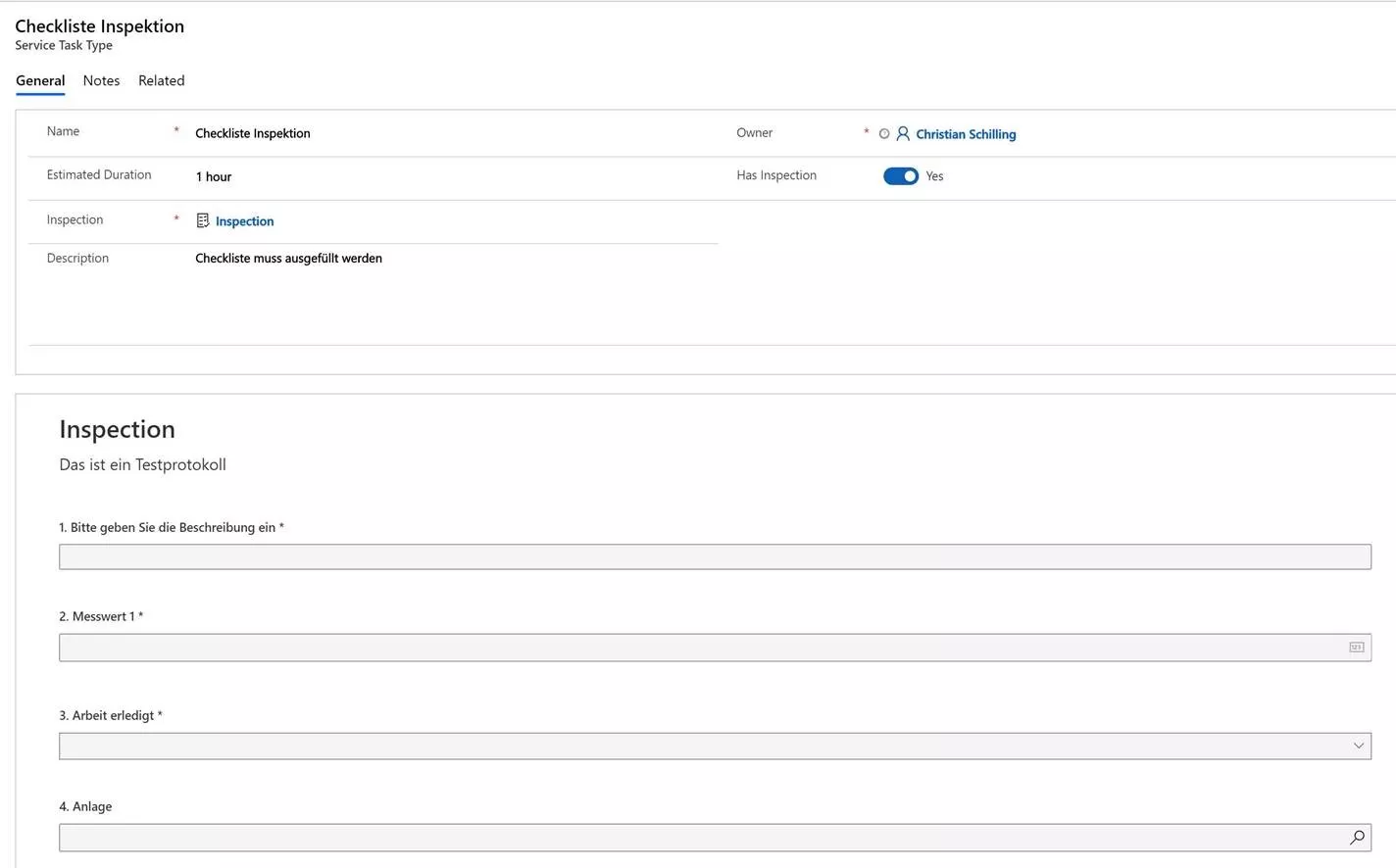 Sehr schön ist die Integration mit Field Service. Ich habe nun einen ServiceTaskType erstellt und konnte hier direkt die Checkliste auswählen, welche mir dann auch angezeigt wurde.