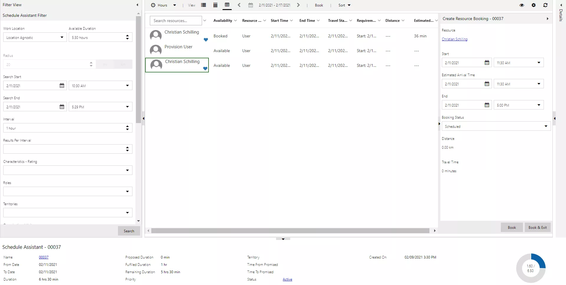 Wählt man eine Verfügbarkeit aus, erscheint rechts das Buchungsfenster. Dort kann mit einem Klick die Buchung durchgeführt werden. Die Buchung ist sofort im Schedule Board für alle anderen Mitarbeiter der Disposition ersichtlich.
